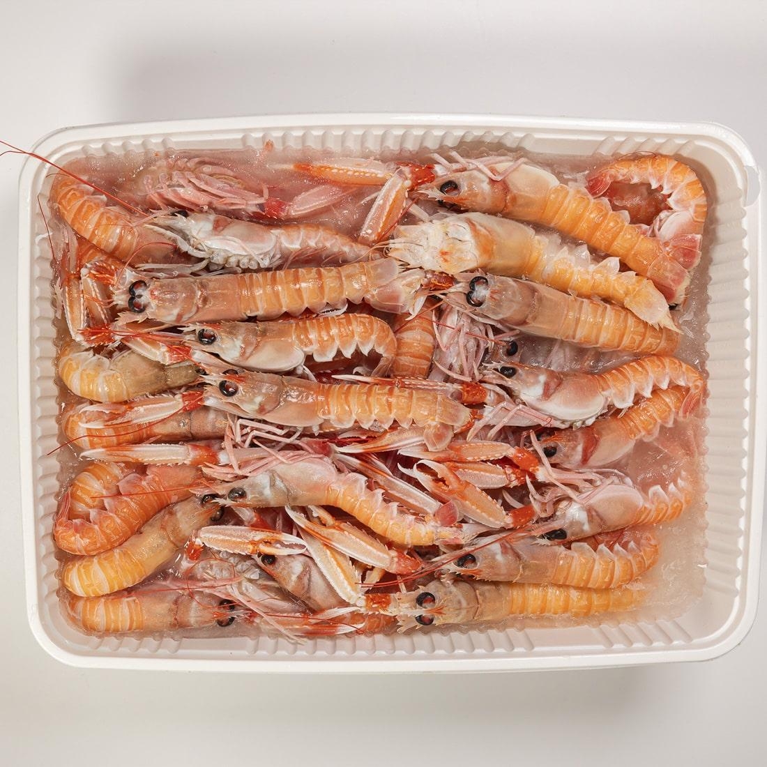 I gustosissimi Scampi di Mazara Del Vallo sono confezionati in vaschette da due chili, di cui uno interamente di ghiaccio per preservare le chele.